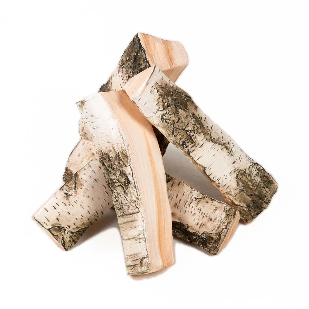 Authentic birch wood in nonflammable ceramic as a decoration item, the perfect addition to your fireplace to create a cozy and inviting atmosphere, without the hassle and mess of traditional logs. Made from real birch wood, these decoration logs have been crafted to look just like the real thing.